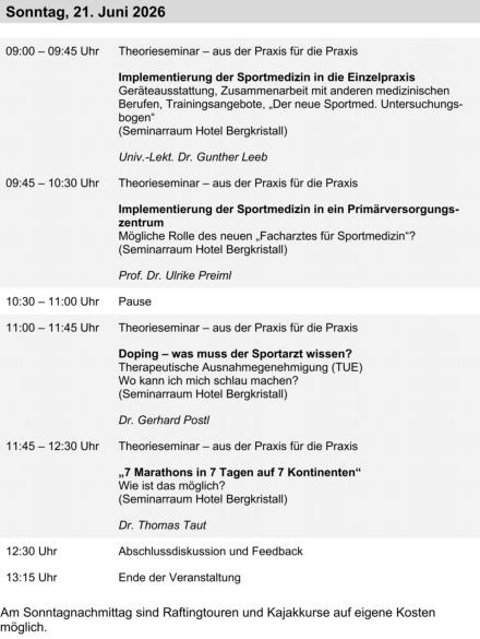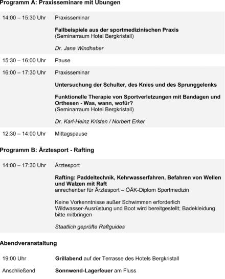 sportmedizinischen Praxis. Am Nachmittag lädt die