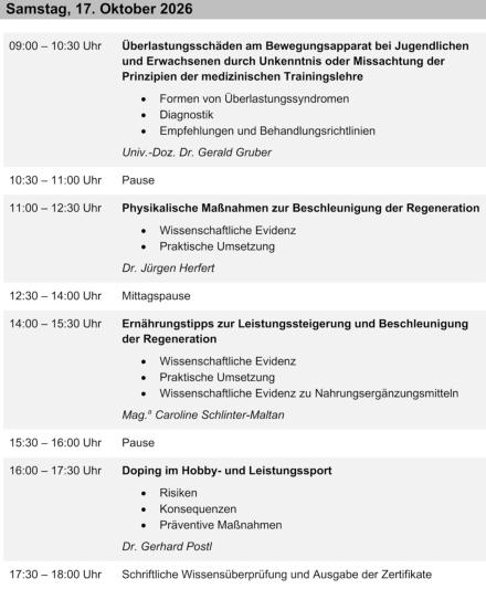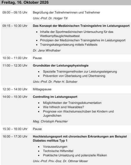 Leistungssteigerung - Controlling - Regeneration 16.-17. Oktober 2026 MedUni Graz